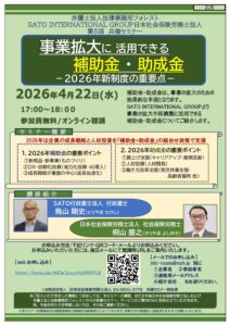 セミナーのお知らせ【2026年[補助金+助成金]活用】